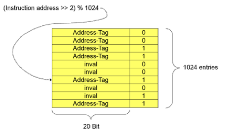 - This one does not have prediction bits (entry means jump, no entry means no jump)