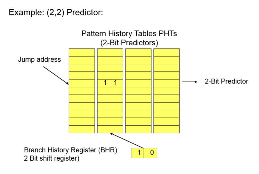 - Branch History Register (BHR): - Globally store the outcome of the last