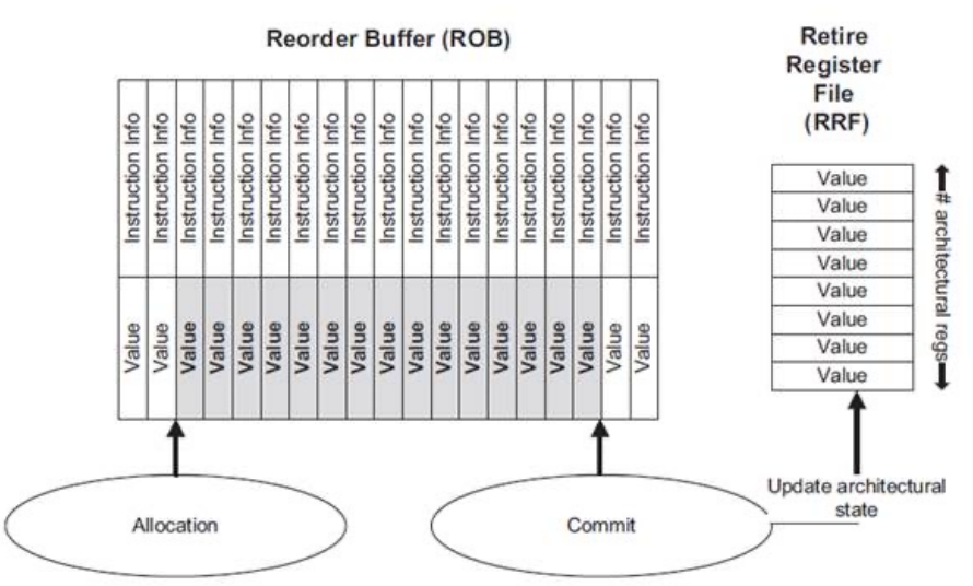 When an instruction of the reorder buffer commits its value is final and put into the Retire Register File (RRF).