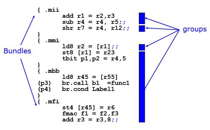 - Parallel instructions kept in Groups (delimited by two semicolons)