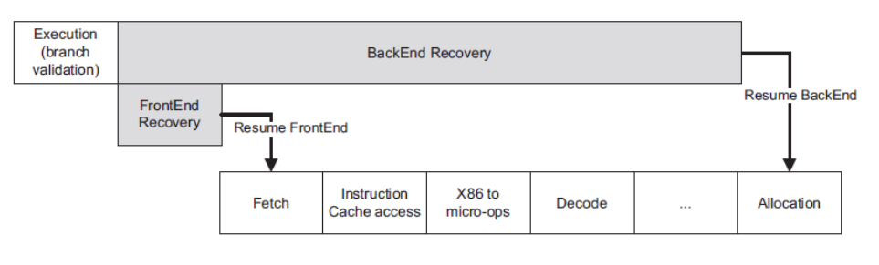 - Speculatively executed instructions have to be flushed -> They are not committed yet