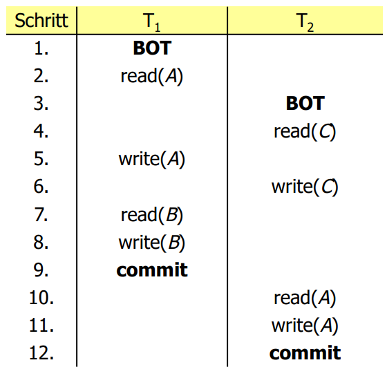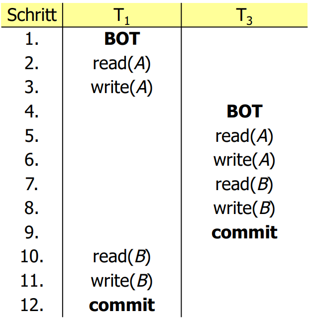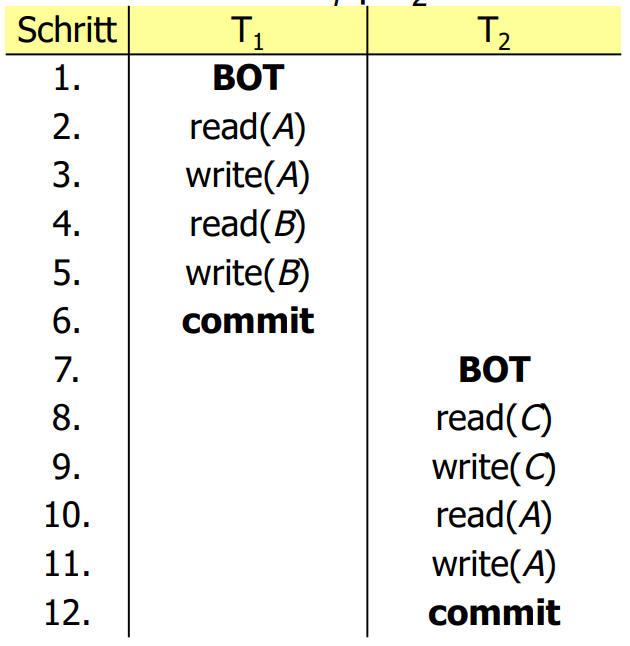 Alle Operationen müssen vor einem abort oder commit durchgeführt werden.