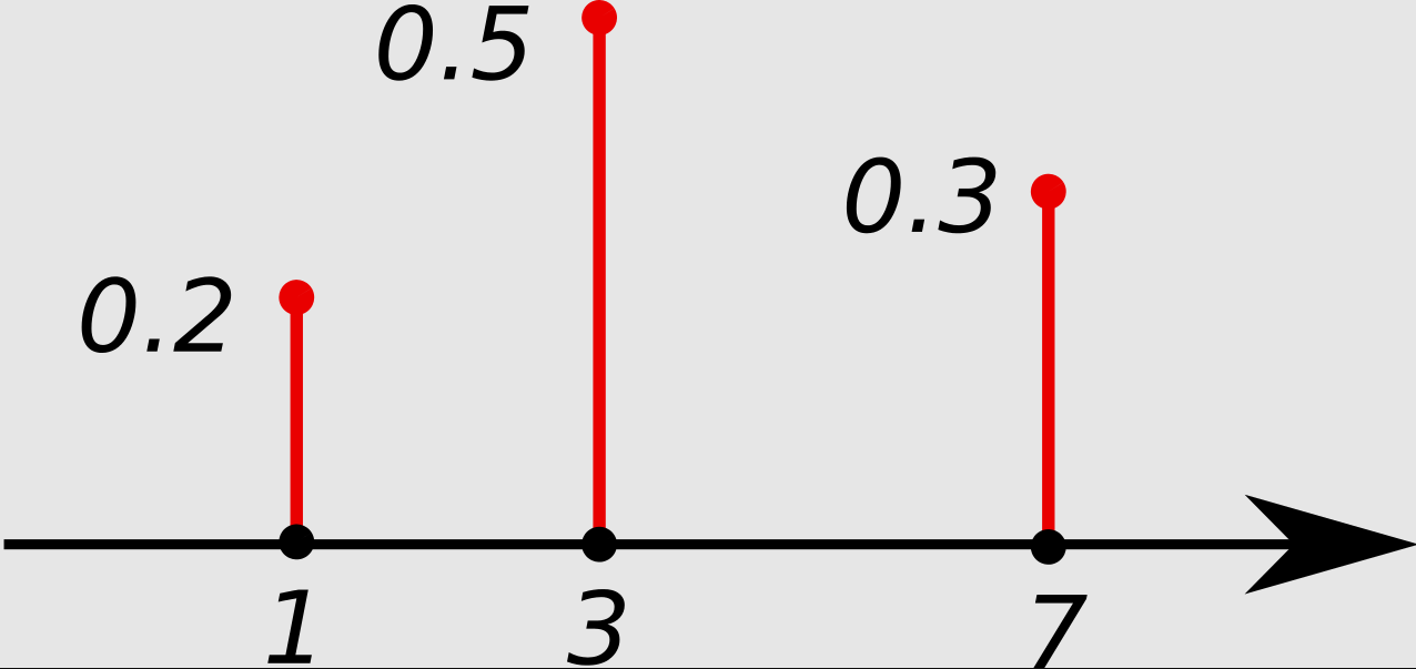 Probability Mass Function Defined as: The probability that a Random Variable takes an exact value . This only work with discrete random variables. Properties #