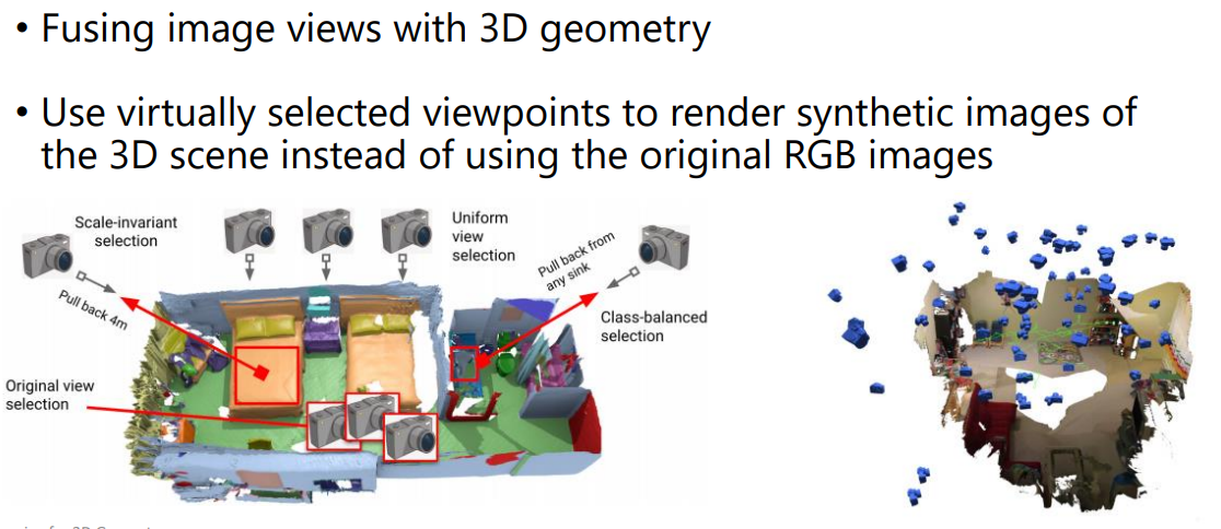 Given a 3D mesh reconstructed from RGBD sensors, our method effectively chooses different virtual views of the 3D mesh and renders multiple 2D channels for training an effective 2D semantic segmentation model. Features from multiple per view predictions are finally fused on 3D mesh vertices to predict mesh semantic segmentation labels