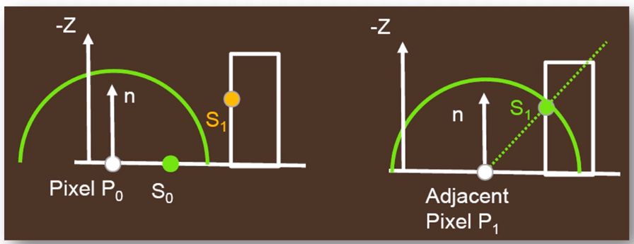 The computed AO from SSAO or HBAO both work with a radius. So the AO is not continuous.