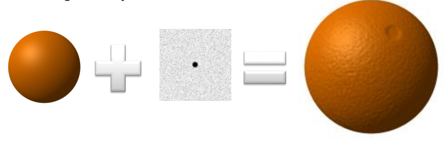 Mapping a grayscale image over a surface, where the color indicates bumps.