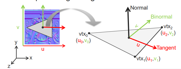 To convert the tangent-space normals to object-space normals we need the Tangent Fram Matrix. The TSM is then just a transformation matrix from tangent space to object space. It looks like this: